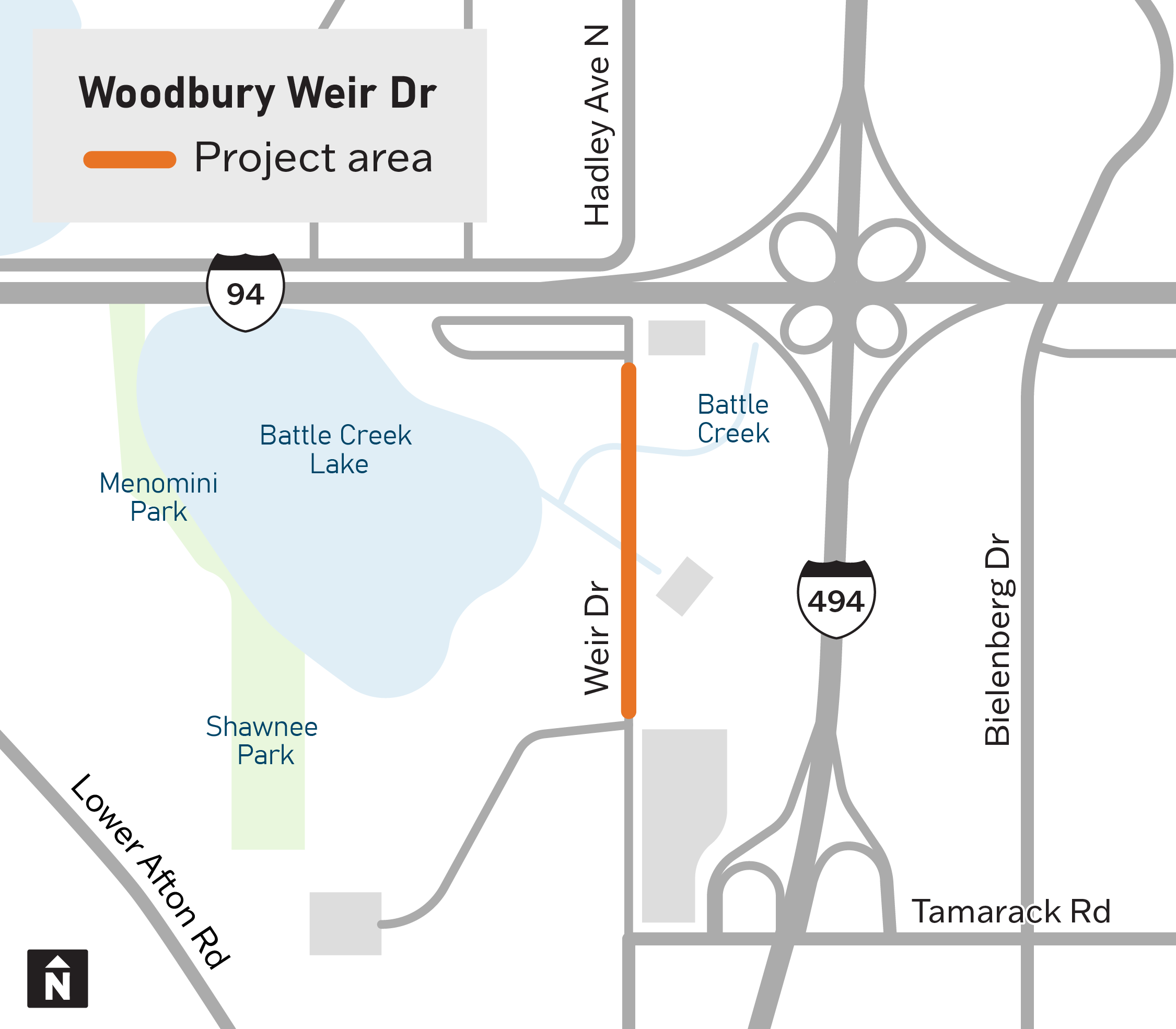 The City of Woodbury plans to improve Weir Drive between Tamarack Road and Ashwood Road. The project will improve roadway safety, address flooding concerns, and update the road to current design standards.